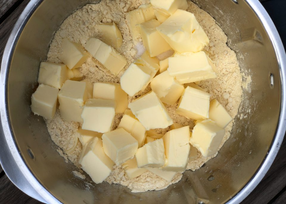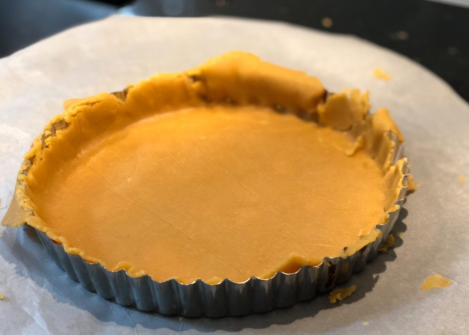 Teig: 250 g Kichererbsenmehl – 5 g Salz – 125 g kalte Butter – 1 Ei